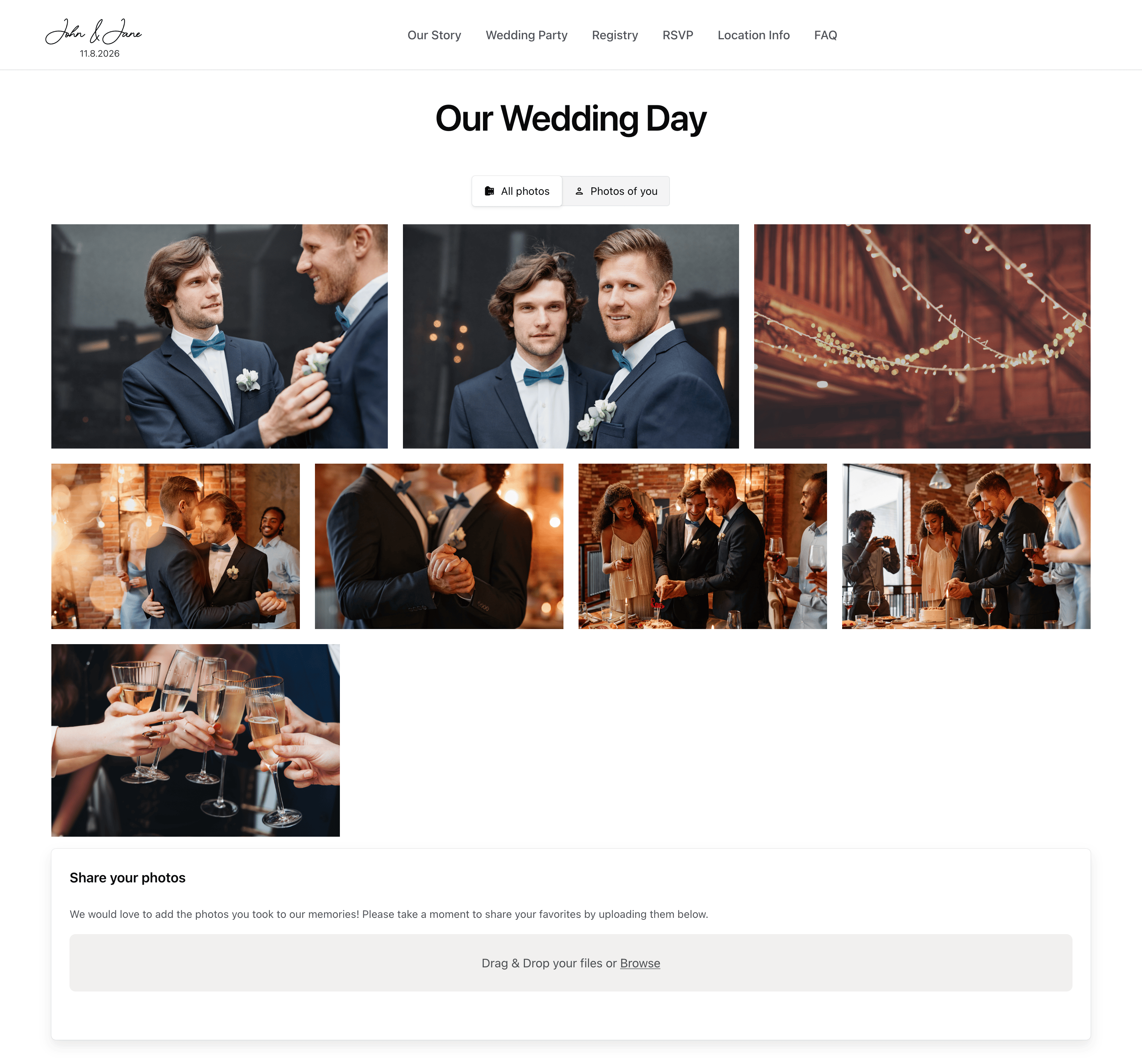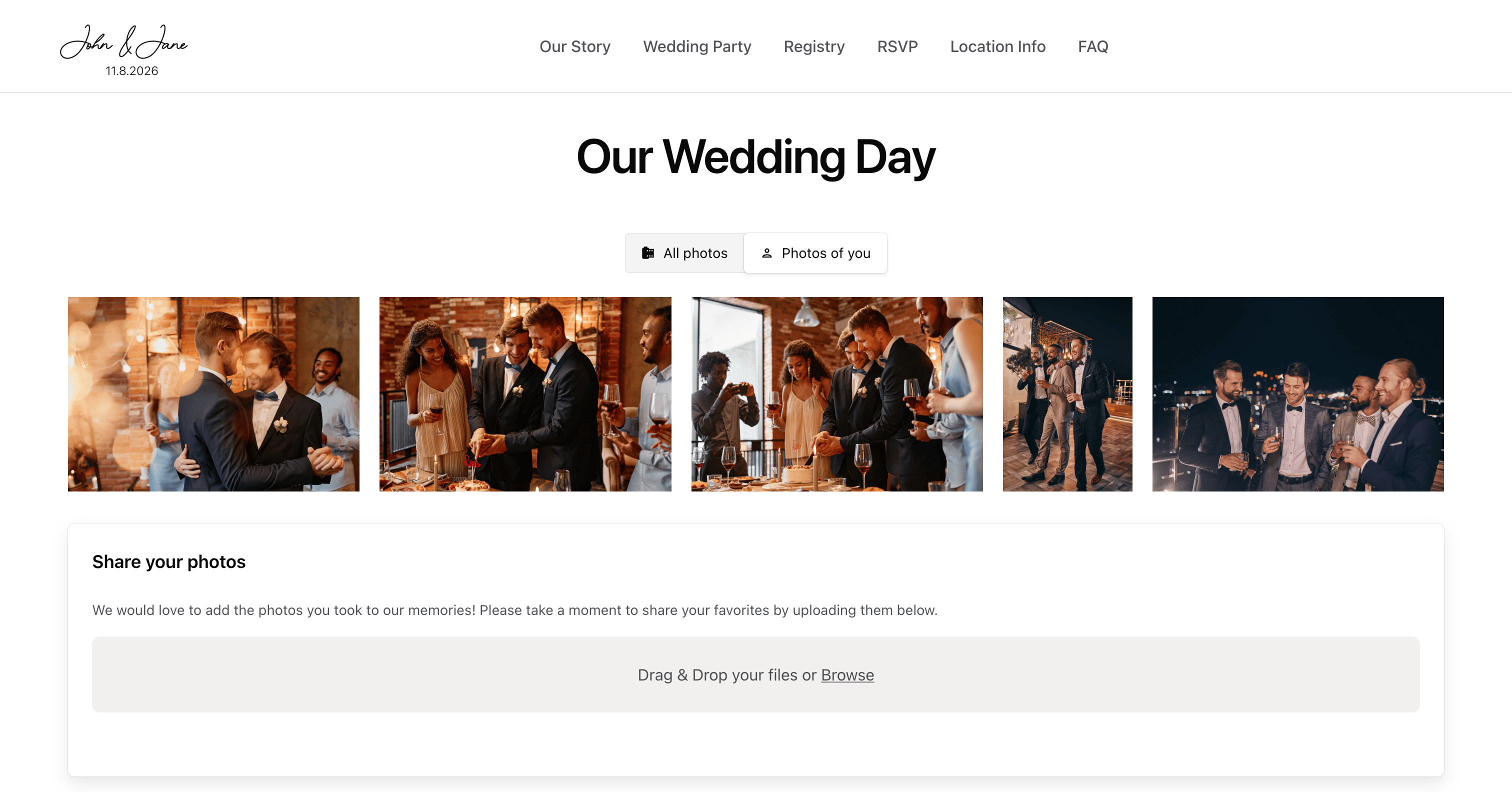 As a result of this work, I was able to replace our home page with a nice photo gallery experience that we sent back out to our guests so that they could relive the memories, and also have the opportunity to upload and share their own with us: