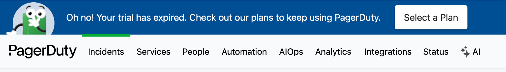 Having flashbacks to Square disabling my account with no warning, I went to the PagerDuty website and logged in there to finally discover the issue: my “trial” had expired.