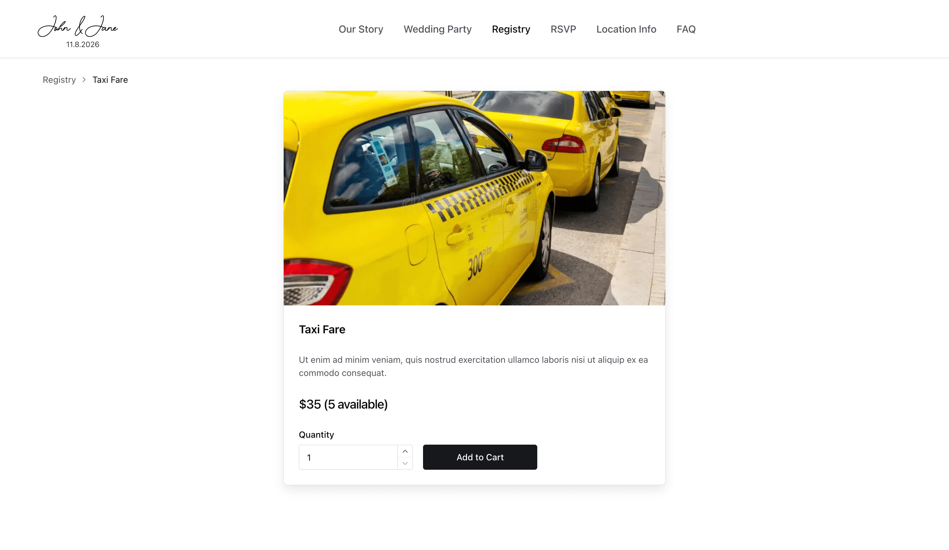 There are two pages on the website that made up about 90% of the complexity of this project – those are the RSVP functionality and the gift registry. These inherently require a lot more going on under the hood to make them work compared to the other relatively static pages, and, especially in the case of RSVPing, are pretty essential to get right so they work 100% of the time. They also happen to be where we had strong feelings about how they should behave, and I spent lots of time experimenting, testing, and customizing them to be what we wanted and needed.